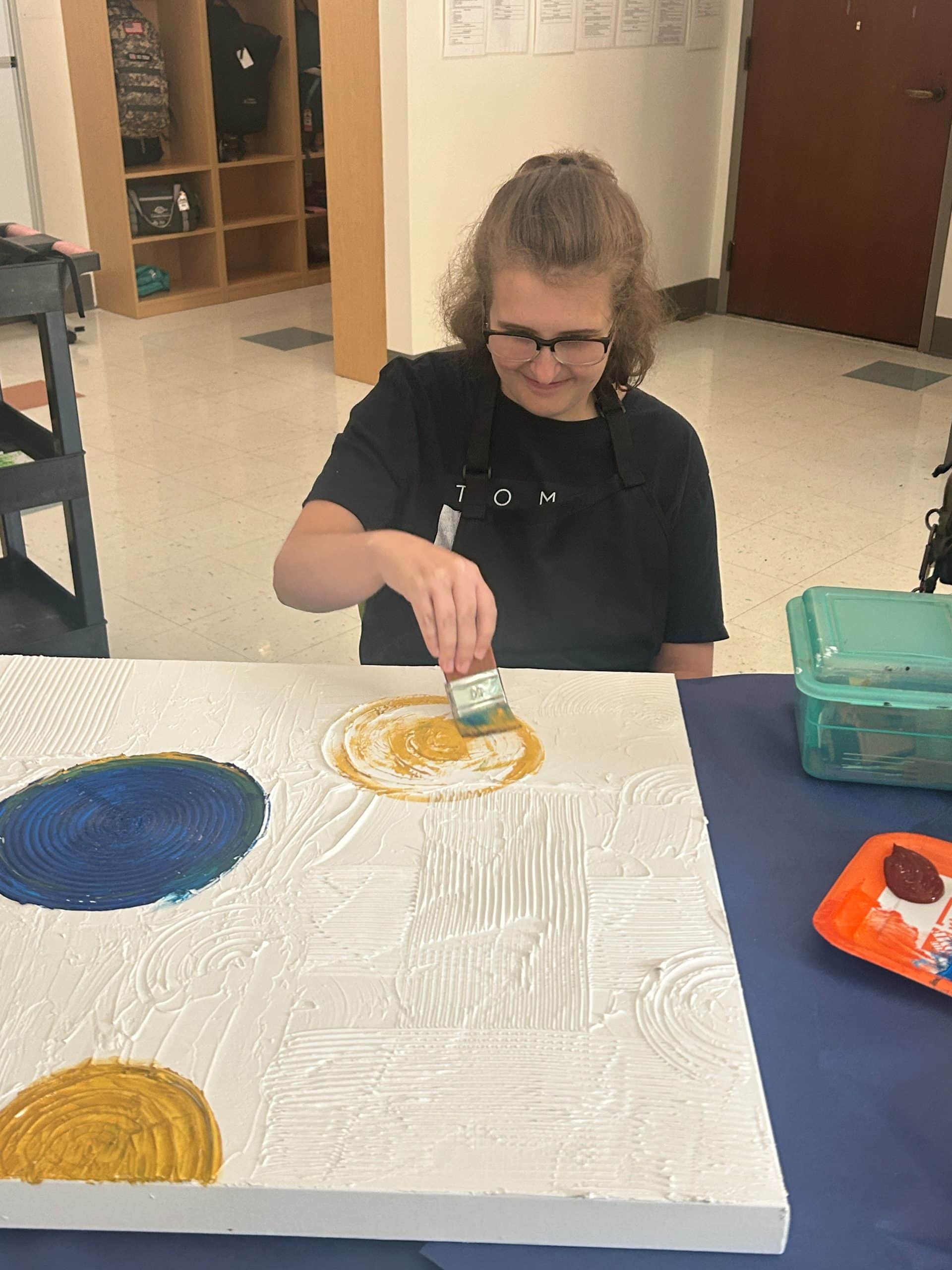 Under the guidance of Shereece Geanmers, Director of Transition and Postgraduate Programs, students explore their creativity and produce unique art pieces. Student artwork is showcased and available for purchase at our annual Sip & Stroll Art Walk. Stay tuned for more details.